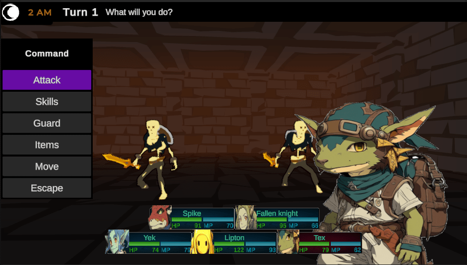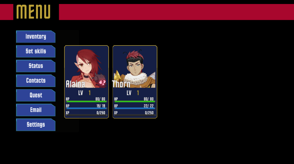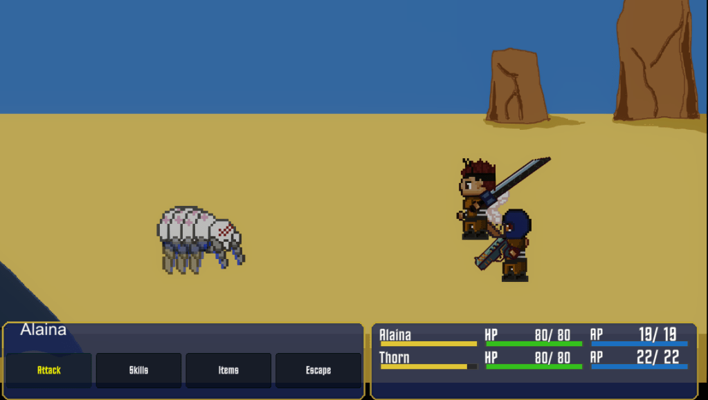 The only issue I ran into was changing from an open-world map ( like Tales games) to a Baldur’s Gate 2 style where the map is locked into zones and only by exiting each zone in the correct direction do you unlock another part of the map. This is the same style of map as Alaina2D. I decided to change it because the open world was a bit much for the scope. If I were to return to this project, I would probably make it into a fantasy game.