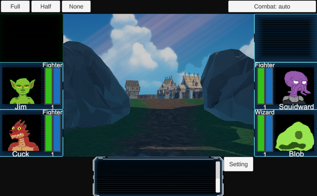This was my second attempt at a 3D project. I wanted this game to be a 3D adventure game like Wizardry 8. The goal was to build a team of monsters to attack the land of man. It was supposed to be a silly game, where you could attack a villager or some heroes, as you play as a team of unimportant monsters.