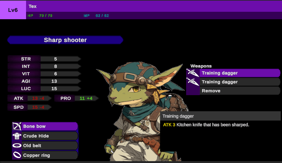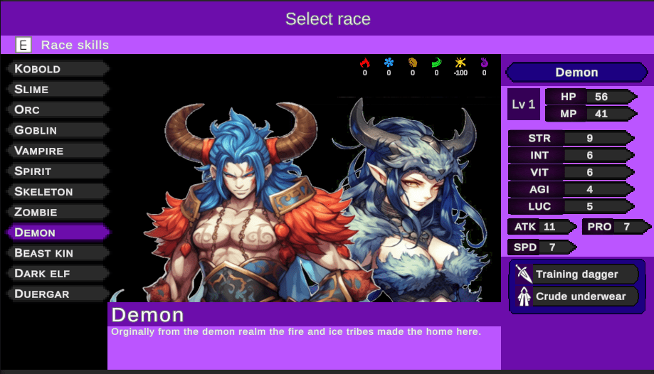 You buy crafting books from a travel merchant found in the dungeons. You can start with “used pair of underwear” and level it up 6 times to be “dragon underwear” +60. I did this because you can craft the next level item with the previous one and if you spend the resources to enhance it to the max, the modification will transfer over to the new item saving you resources. The crappy sword you got at the begin of the game has the ability to slay a god if you upgrade it enough. There’s going to be six dungeons (right now 3ish are completed) that explore the world of goodly creatures and fight off enemies that you would normally ally with in other games. This means you start at the Dark Lord’s castle and make your way to the human capital while fighting dwarfs, elves, guards, and the hero’s party. There is also a faction system but I am probably going to rework it because, in its current state, it adds a lot more work to write a unique story faction quest.