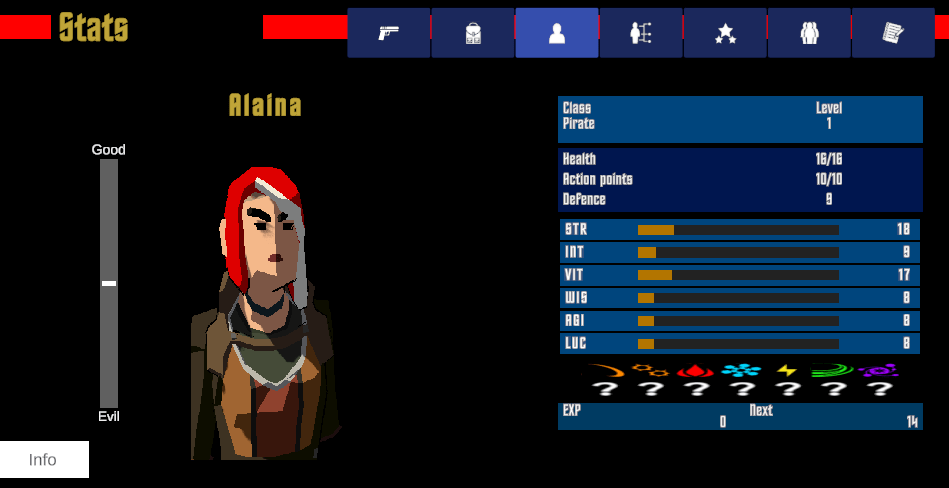 The current version is suffering from story stucturing, which I hope to resolve soon. Basically, I want the dungeon to tell a story and the game to have a mystery that unfolds as you play because I want the players to be excited for each new floor of the dungeon and what secret they will find.